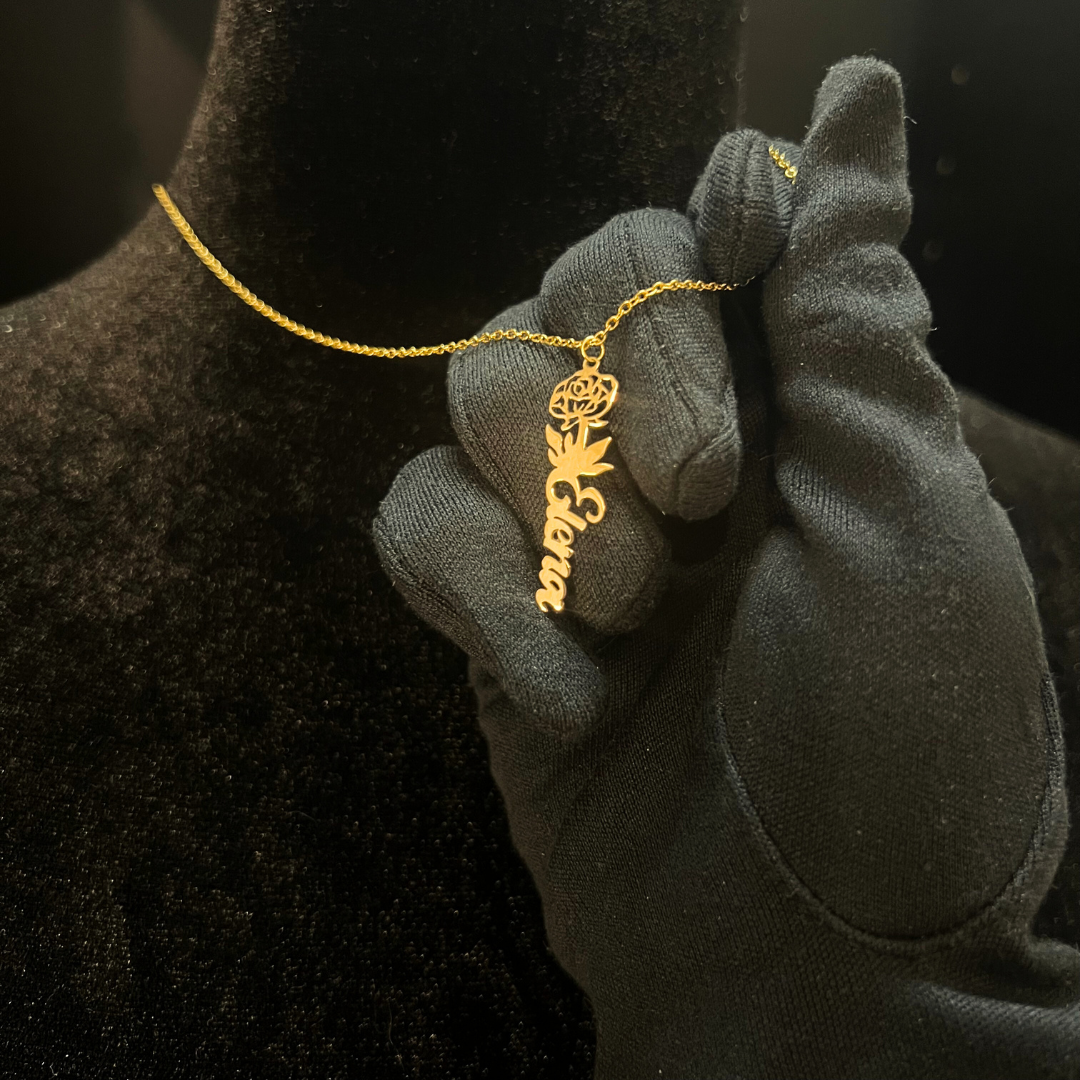 Des colliers avec extension, des médaillons gravés avec des prénoms en arabe,...