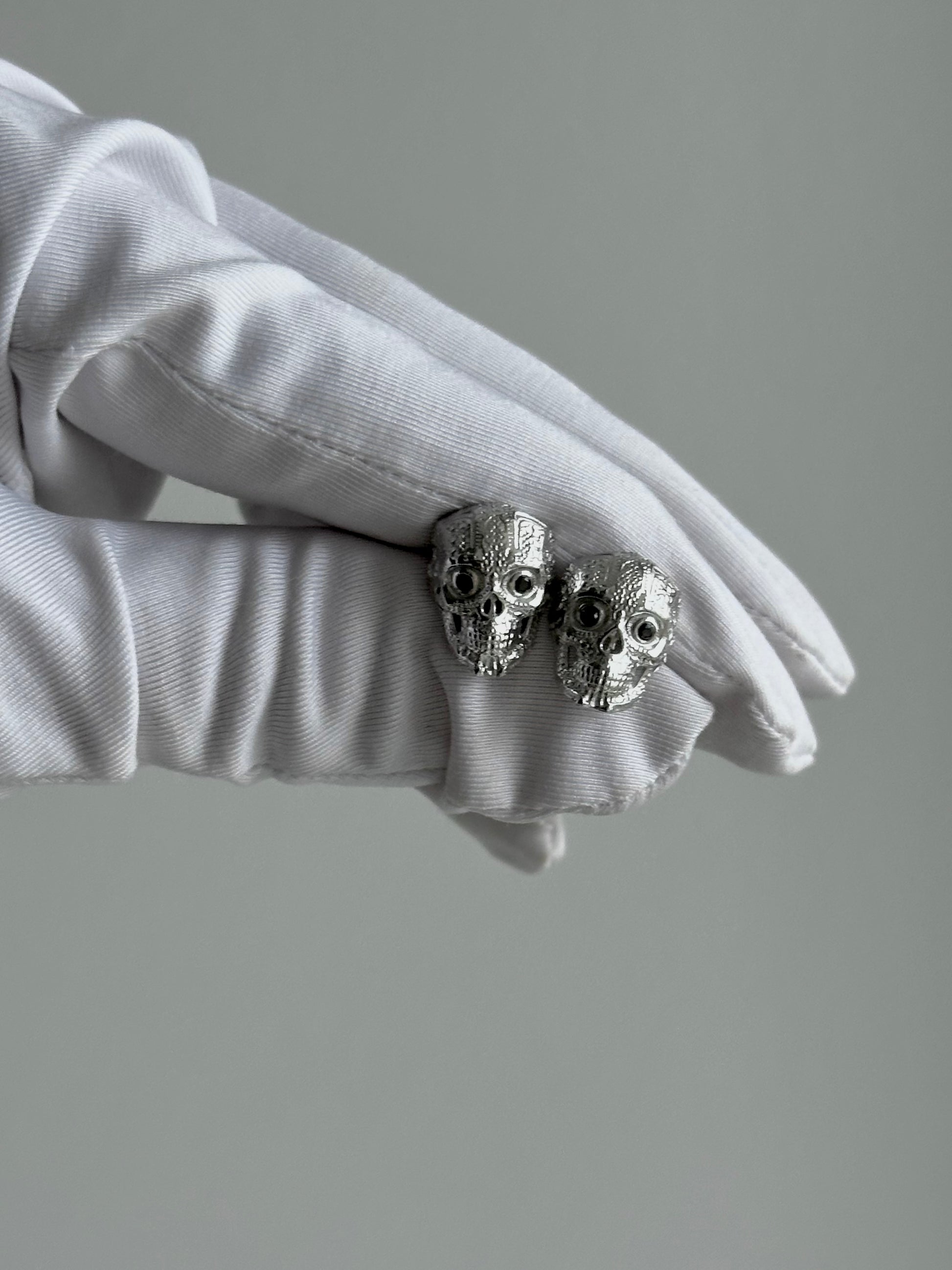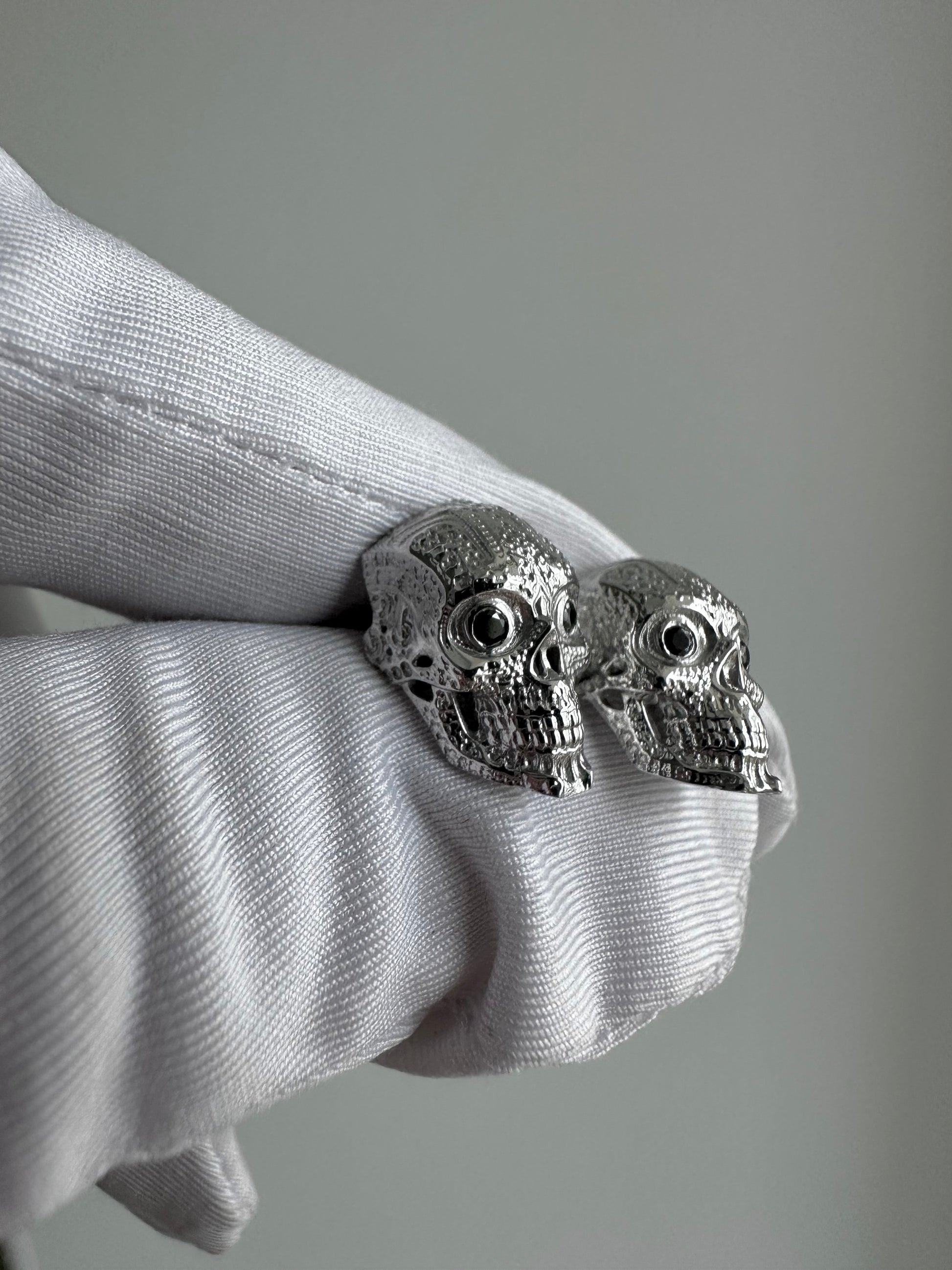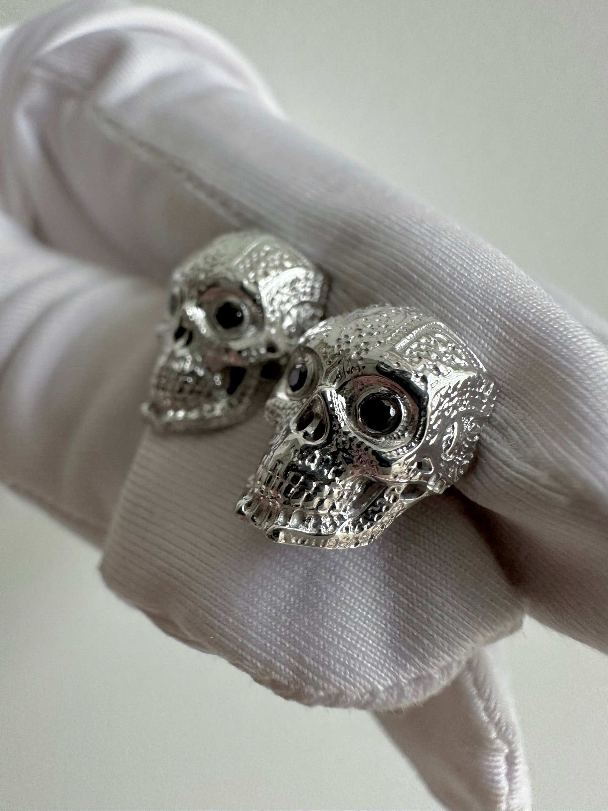 Chaque pièce, façonnée à la main dans notre atelier, révèle un design saisissant : une tête de mort finement détaillée, sublimée par des yeux en zircon noir. Le contraste entre la brillance de l’or et la profondeur des pierres crée un équilibre parfait entre mystère et éclat.