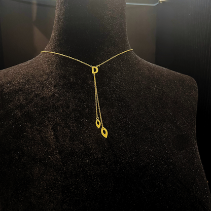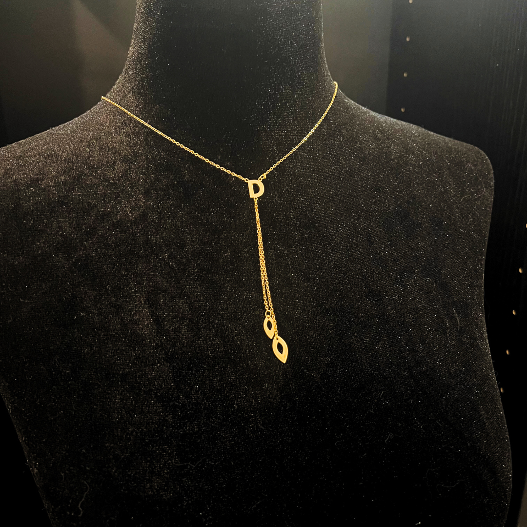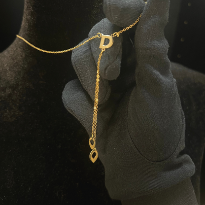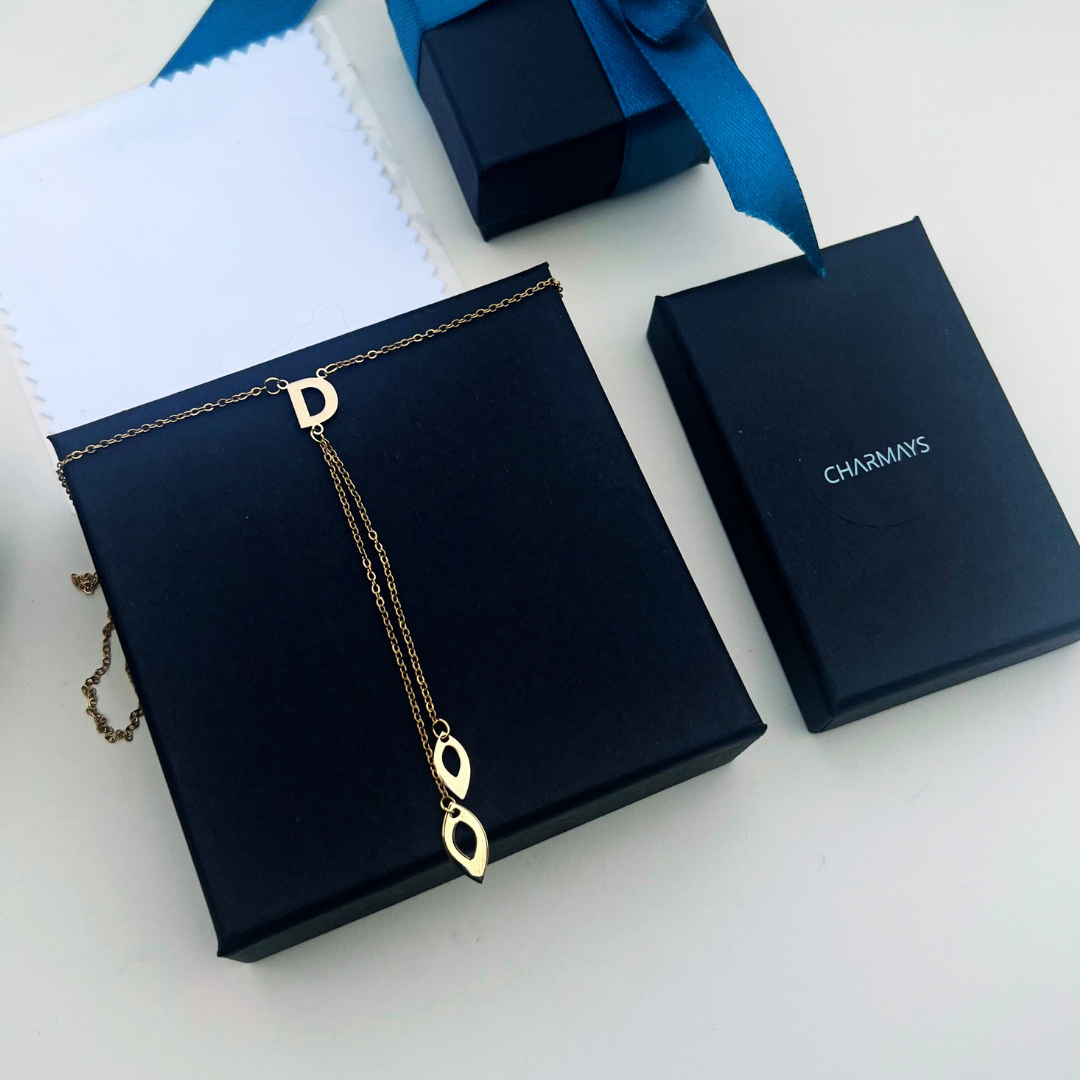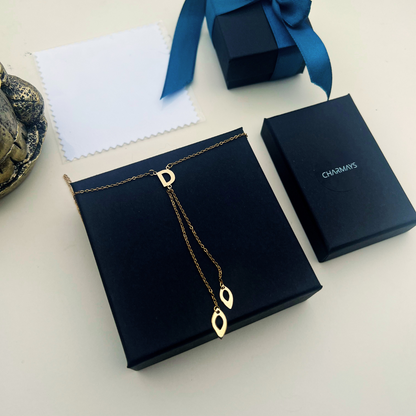 Inspiré de l’élégance naturelle et du pouvoir des symboles intimes, le collier Tiréa en or 9 carats célèbre ce lien unique que l’on porte près du cœur. Une initiale discrète suspendue à une chaîne fine, prolongée d’une délicate extension terminée par deux pendentifs en forme de goutte, pour une touche de grâce en mouvement.